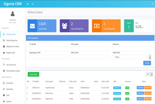 Sistem e çalıştığınız , sigorta sirketinden müşterileriniz excel olarak alıp , sistem e tanıtabilirsiniz .